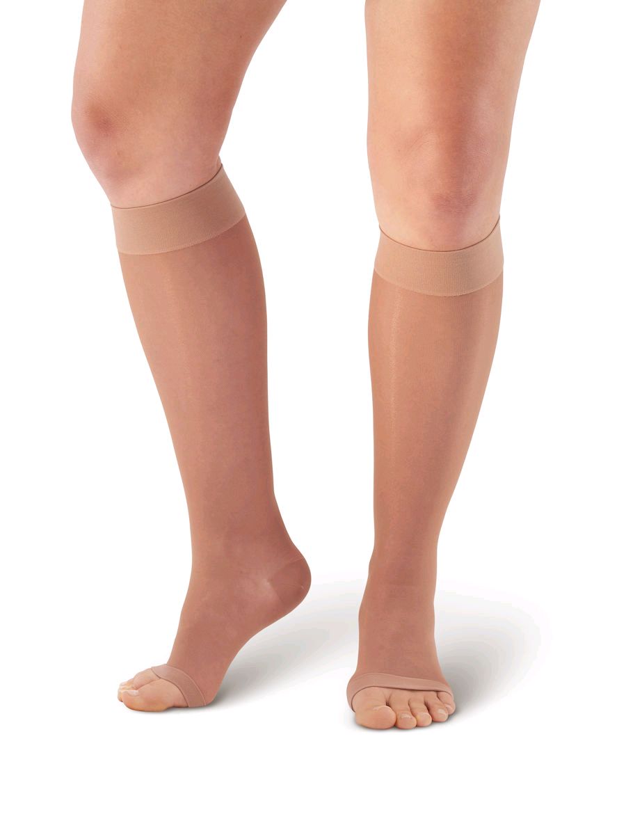 Ladies Toeless Sheer Support Knee High Stockings are made with a medium weight compression level to help prevent and relieve swelling in the ankles, varicose veins, leg fatigue, heavy feeling in the legs, and can be used whilst travelling to help prevent DVT.
